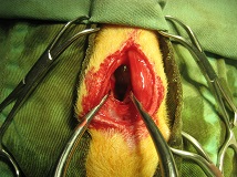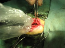 切開した喉部分を融合し、手術完了。 |