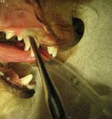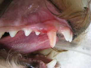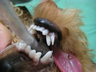 1歳になる頃には乳歯は自然と抜け落ちてしまうのですが、この子は1歳を過ぎても抜けなかったため、全身麻酔をして乳歯を抜いてしまいます。 乳歯を放っておくと、食べカスが付きやすくなり、歯周病や歯肉炎の原因になります。 |