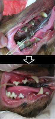 当院では、まず飼い主様に歯磨きをすることをお勧めし、歯磨き習慣がついたのちに全身麻酔の元で歯石除去手術を行っています。