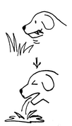 庭のなかや散歩の途中で猫や犬が草の葉を食べて、しばらくするとそれを吐きだすのです。えさに野菜が不足しているのではないかと思う飼い主もありますが、これはちょっと意味が違います。多くの場合、草と一緒に胃液や粘液を吐きだします。白い泡と無色の液体がそれです。